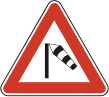úsek cesty, kde prudký bočný alebo nárazový vietor môže ohroziť bezpečnosť cestnej premávky