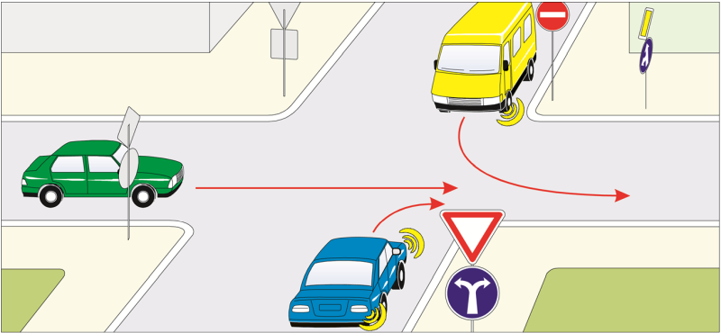 Vozidlá prejdú cez križovatku v tomto poradí: